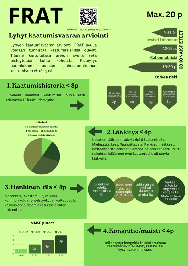 Lyhyt kaatumisvaaran arviointi – FRAT (pdf 99 kt) on saatavilla täällä: Terveyden ja hyvinvoinnin laitos.